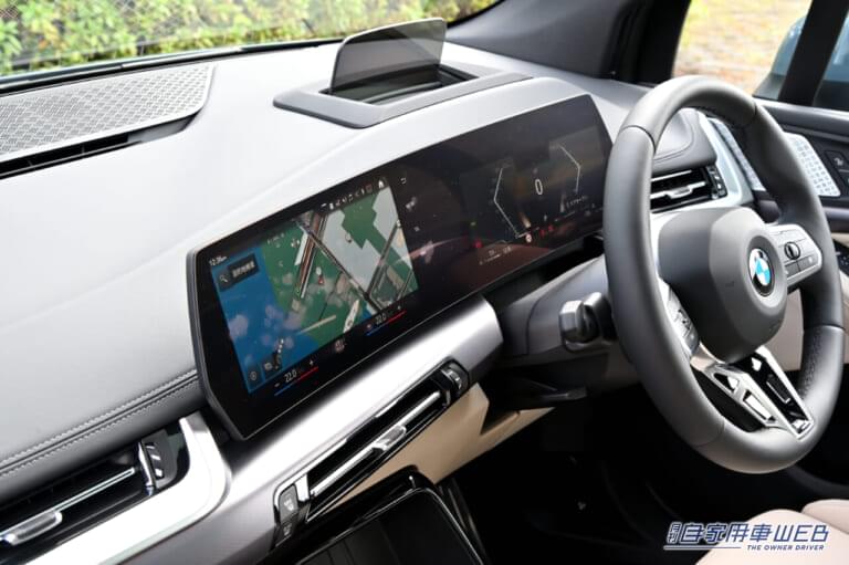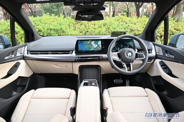 全長が4.4mほどで最小回転半径が5.4mのボディは、狭い道で扱いやすいちょうどいいサイズなのに、高速道路でもどっしりとした安定感のある走りを見せてくれます。インテリアには優雅なレザーがふんだんに使われて、シートの座り心地がよく、後席の足元も広々。BMWのコンパクトクラス初となる、先進のカーブドディスプレイは美しく鮮明な画面で情報が見やすく、操作系はすべてセンターコンソールにまとめて配置されるなど、デジタル世代にも満足度が高い空間となっています。