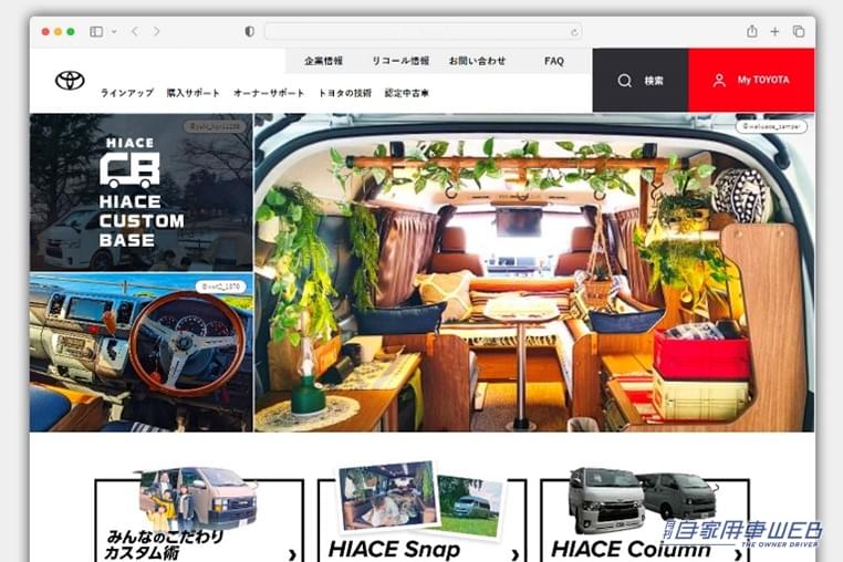 公式サイトでは、独自のカスタマイズを施すハイエースオーナーのスナップやこだわりポイントを紹介するインタビュー、ハイエースにまつわる知識などを発信し、あらゆるハイエースファン、またこれからハイエースカスタムにチャレンジしたい人に向けて“タメ”になる情報を提供している。