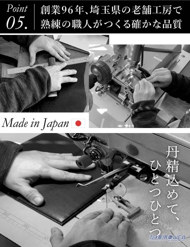 素材には手触りの良い兵庫県産の本革を使用。本革の一番の特徴は経年変化を楽しめることだ。車と同様、ときには専用オイルやクリームなどでメンテナンスしてあげれば、使い込むほどに持ち主の手に馴染む。手触りや艶感が、自分だけのオリジナルの表情のケースへと成長していく。