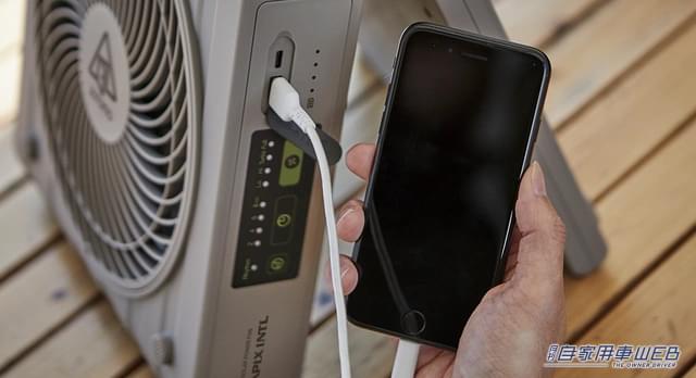 蓄えた電気でスマートフォンへの急速充電を行うことができる。災害時に発電機を兼ねた最大18w出力のモバイルバッテリーとして使用可能だ。