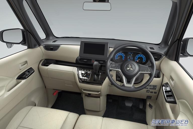 さらにヘッドランプにはLEDプロジェクターヘッドライトを全車標準装備とし。新デザインの14インチホイールカバーは3本スポークをイメージさせるものとしている。ボディカラーも手が入り、モノトーンに新色の「デリカミニ」にも採用されているアッシュグリーンメタリックに加え、ミストブルーパールを新たに設定。2トーンにはナチュラルアイボリーメタリック×ブラックマイカ、ホワイトパール×ブラックマイカ、ミストブルーパール×ホワイトソリッドを新たに採用し、モノトーン7色、2トーン4色の、全11色としている。