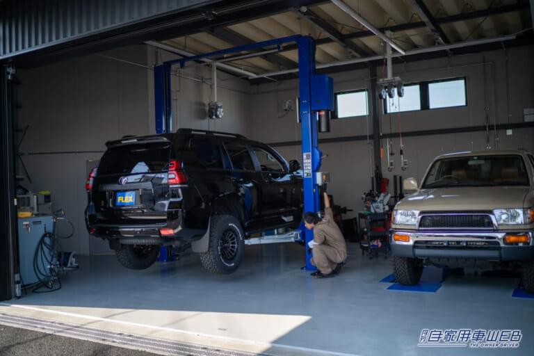 リフトを2基備えた認証工場を併設しており、カスタムパーツの取り付けやメンテナンス、車検まで幅広く対応。一般的な整備やカスタムはもちろん、車検やアフターサービスまで、ランクルに関するあらゆる作業を任せることができる。熟練の一級自動車整備士が専門店ならではの知識と技術で、確実に仕上げてくれる。