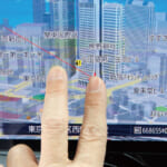 地図上で2本指を上下に動かせば見下ろし角度の調整が可能。ひねれば回転ができる。