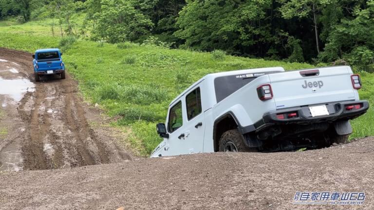そんなわけですからトラックであってもジープの走破性の高さは全くそのまま。今回は特設スーパー悪路で走らせる機会に恵まれました。