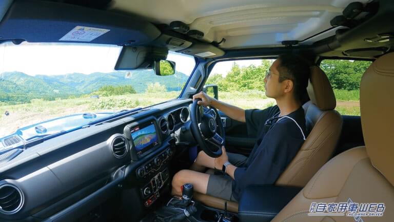 特筆すべきはこんな高度な制御を行いつつ、ぐちゃぐちゃダートを走っている間、車内は至って平和なこと。車体は大きく前後左右に動きますが衝撃はなくてむしろ乗り心地が良い。さらにV6 3.6ℓのNAエンジンも異様なほどのフレキシブルさ。最適トルクを振動なく静かに発生していて、門外漢がジープに想像するラフな世界はございません。