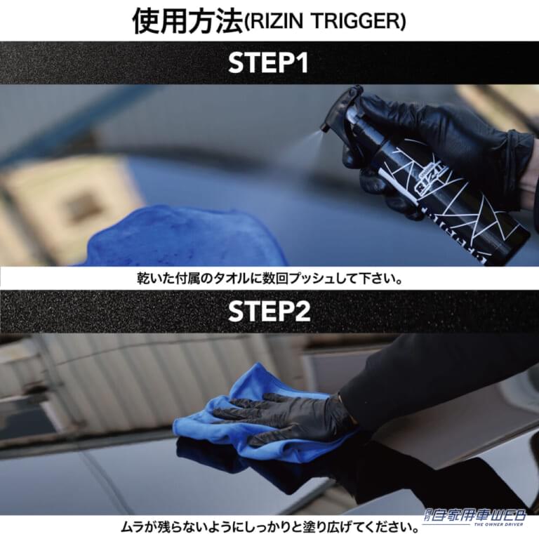 カーケアブランドのスパシャンは、手軽に洗車と本格的なカーコーティングを楽しめる「RIZIN BOX」のセット内容の「トリガースプレー(コーティング剤)」の単品販売を開始した。