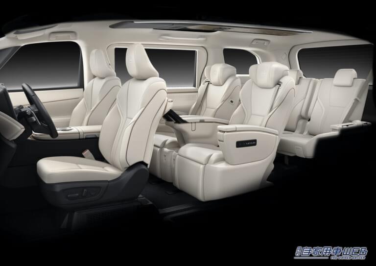 また、乗員はノイズや不快な振動を気にすることなく、車室内での快適な時間を過ごせるように開発され、エクステリア/インテリアデザインもレクサスにデザイン言語に沿ったものとなっている。シート仕様は2+2+2の3列6人乗り、2+3+2の3列7人乗り、2+2の2列シート4人乗り仕様がラインナップされる。