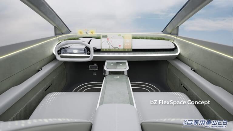 一方、bZ FlexSpace Conceptは、実用性を重視したファミリー向けのSUVタイプのBEV。コンセプトは、家族が安心・快適・自由に使える「COZY HOME」。