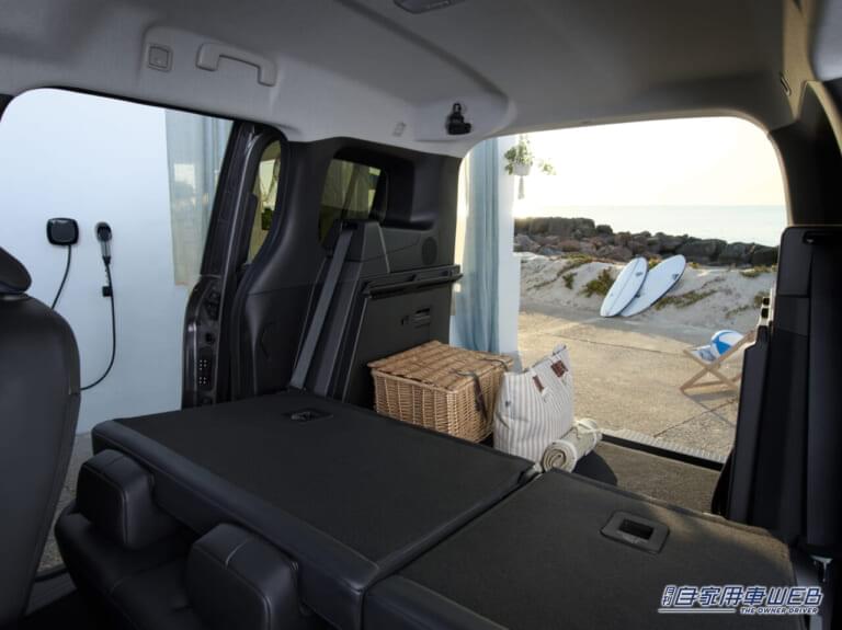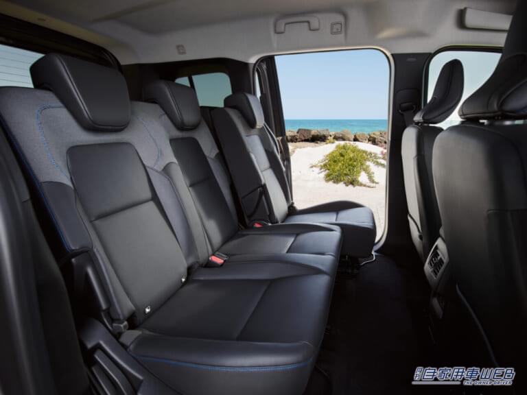 小型商用車「タウンスター」と同じデザインのインパネまわりだが、ドライバーの集中力を高める10インチのデジタルコンビメーターを採用。センターコンソールには、ワイヤレス充電機能も備える。さらに、オプションでデュアルゾーンクライメートコントロール、ヒーテッドフロントガラス、ステアリングヒーター、フロントシート、リアエアベント、ヒーターダクトが用意されている。室内空間は2列シートの5人乗りで、通常は850Lのラゲッジ容量を持ち、6:4分割可能な後席を格納すれば最大2500Lまで拡大できる。