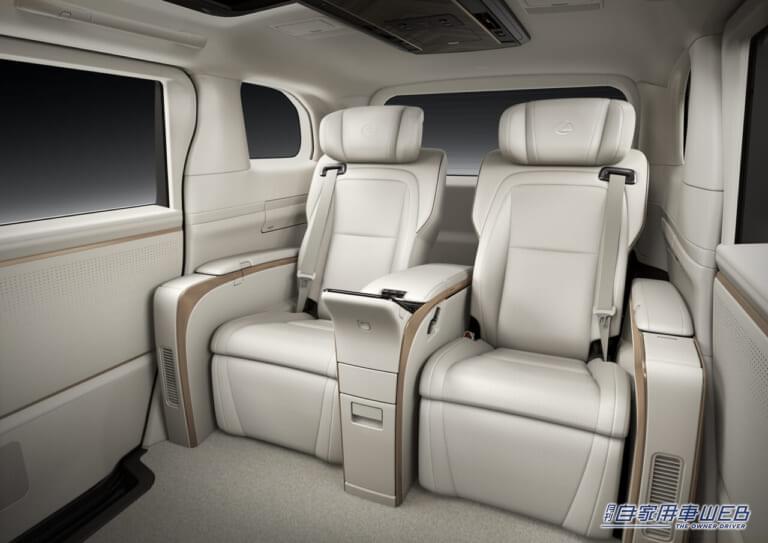 後席の2人掛けシートは、専用の独立タイプでオットマンの伸縮量を先代モデルより延長し、パーティションとの距離を保つことで余裕のあるスペースを確保している。さらに快適性の向上のため、レクサスとして初めてアームレストとオットマンにもシートヒーターが採用された。