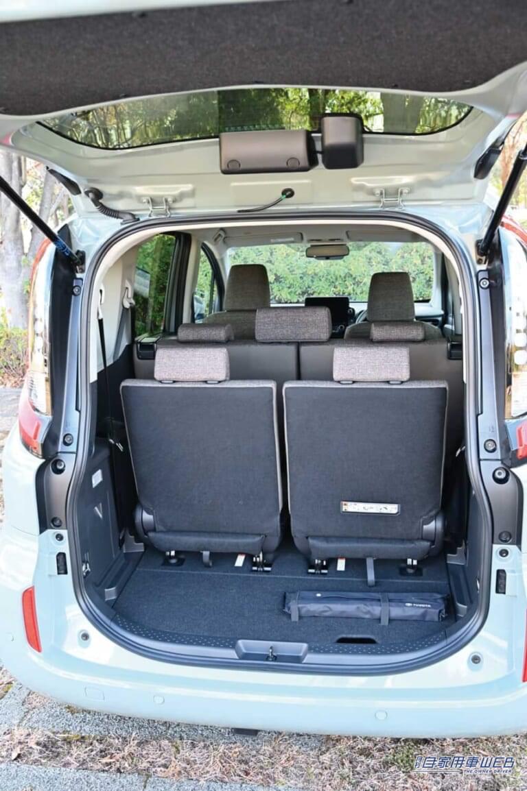 コンパクトな車体ながら、ロングドライブにも十分対応できる3列シートを実現。とくに3列目のつま先の自由度が高いのが嬉しい点。