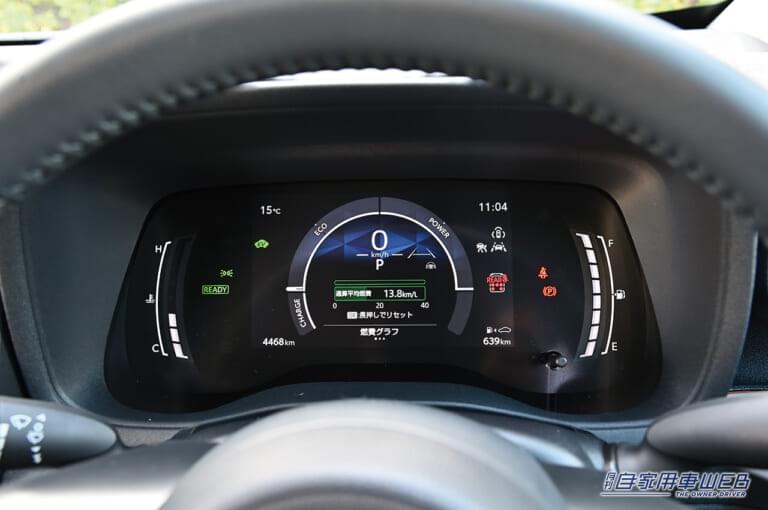 ●全長×全幅×全高(mm):4260×1695×1695 ●ホイールベース(mm):2750●トレッド前/後(mm):1490/1480 ●地上最低高(mm):140 ●車両重量(kg):1370 ●パワーユニット:1.490L直列3気筒(最高出力:91PS/5500rpm、最大トルク:12.2kg・m/3800~4800rpm)+前モーター(最高出力:59kW、最大トルク:141N・m) ●トランスミッション:電気式無段変速機 ●WLTCモード燃料消費率総合(km/L):28.2【市街地モード:27.1、郊外モード:29.8、高速道路モード:27.6】 ●燃料タンク(L):40(レギュラー) ●サスペンション前/後:マクファーソンストラット式/トーションビーム式 ●ブレーキ前/後:ベンチレーテッドディスク/ディスク ●最小回転半径(m):5.0 ●タイヤサイズ:185/65R15(※試乗車はOP設定のアルミホイールを装着。標準仕様はスチールホイール+樹脂フルキャップ仕様)