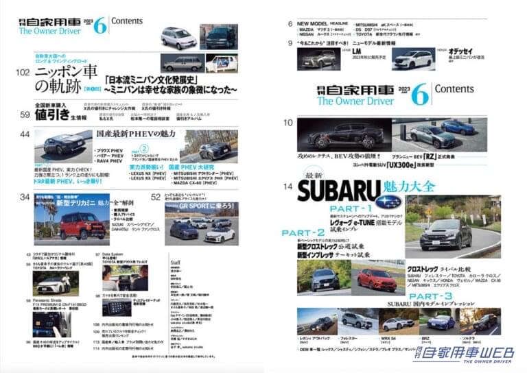 月刊自家用車6月号(4/26発売)では、攻めのレクサス、BEV攻勢の狼煙!となるブランニューBEV「RZ」な「UX300e」などを巻頭で紹介!国産PHEVの魅力や注目の軽自動車「デリカミニ」、GR SPORT特集など盛りだくさん。人気のディスプレイオーディオ紹介や、X氏の値引き情報など、その他企画も盛り沢山で絶賛発売中。