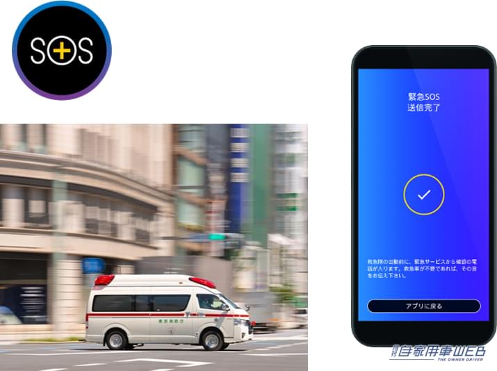 交通事故発生時、ドライブレコーダーに内蔵されたGセンサーが衝撃の大きさを検知。独自のアルゴリズムで救急要請の是非を判断し、未対応または要請があった場合、ドライブレコーダーで取得した位置情報に加え、モバイルアプリに登録された車両・ドライバーの情報、血液型やアレルギーなどの医療情報を提供し、迅速かつ的確な救助をサポートする。