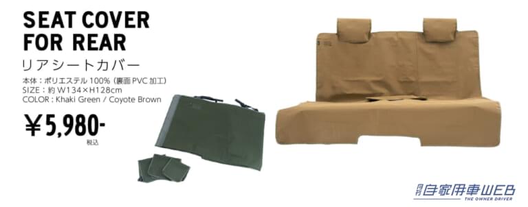 表面をCORDURA FABRIC、裏面をPVC加工にすることで高い耐久性と、撥水機能を実現。ヘッド部分は本体とは別になっており、多くの車種に対応する。別売りの「フロントシートカバー」と組み合わせることで、車内の雰囲気を統一できる。