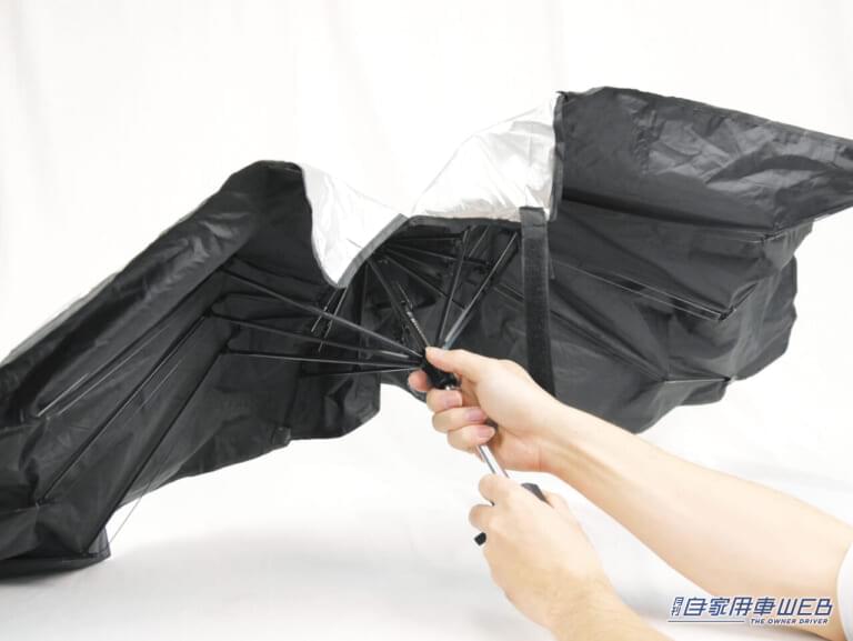 従来の板型のサンシェードは、折り畳んでも長さがあり、収納スペースに問題があった。