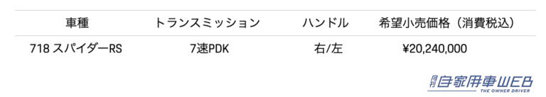 新型718 スパイダーRS価格