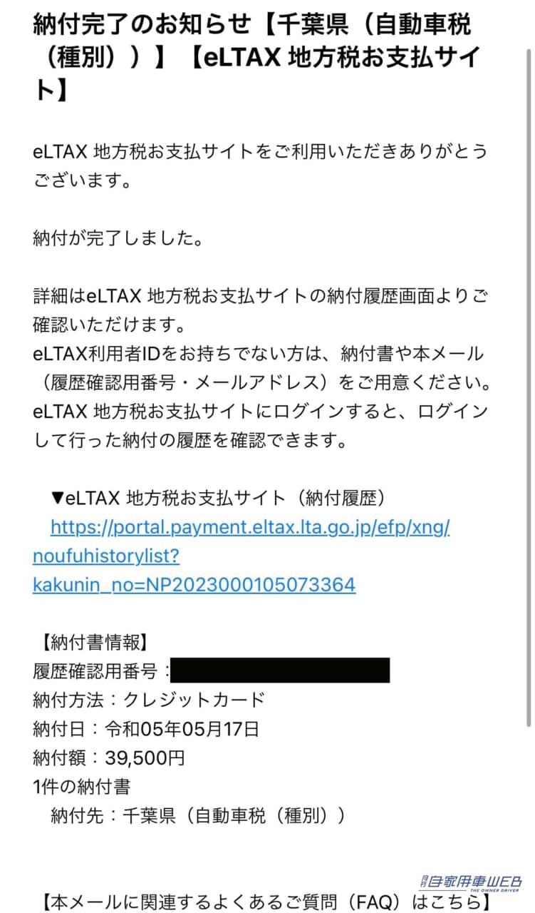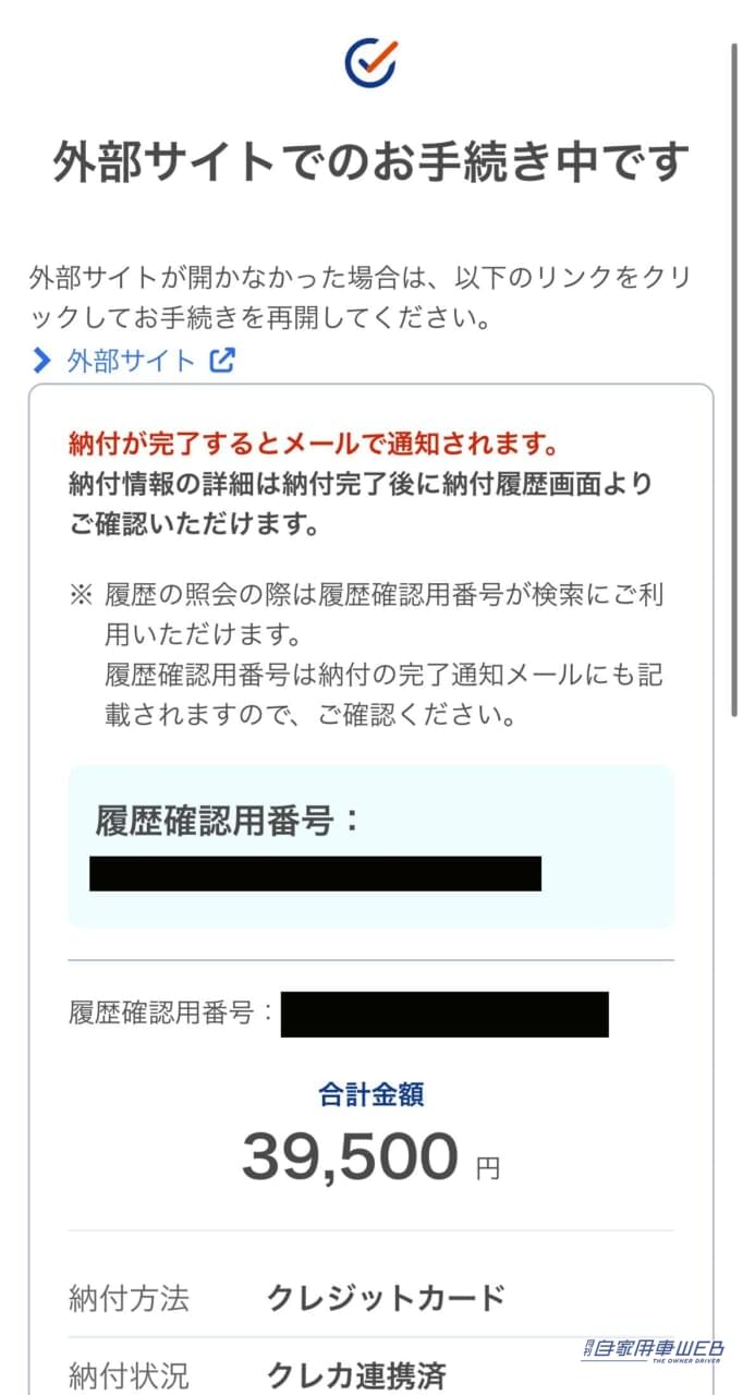 メールに記載されたリンクをタップすると、納付済であることが確認できる。