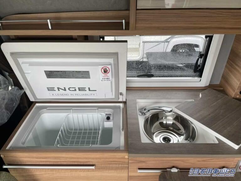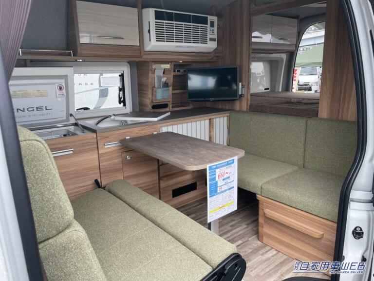冷蔵庫、シンク、エアコン、テレビと、キャンピングカーに求める装備がギュッと詰まっている。