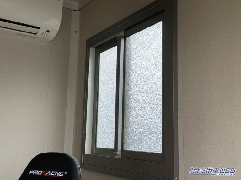 窓も設置されており、換気もしやすい。また、室外にはブレーカーとコンセントがあるので何かと便利。