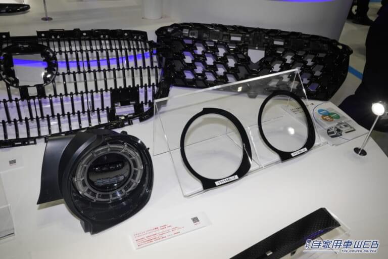 使用済み製品をリサイクルしたサンプル品を多数展示。このテールライトはライトレンズを回収し、リサイクルしたレンズを使用しているサンプル品になる。