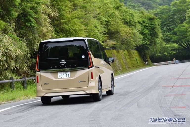 試乗した印象でも力感が違っている。全開加速で速くなったこともあるが、加速感の高まりや刺激という面ではむしろ抑え気味であり、巡航からの急加速でもドンッと蹴り出されるような唐突な印象はない。応答遅れなくグイッと車速を上げていく。「e-POWER」も登場初期の頃は低中速での瞬発力電動感を演出していたが、改良を経る毎に刺激少ない力強さへと軸脚を移しつつある。電動の特性をドライバビリティの質の向上に振り向けたと考えてもいい。そして新型セレナの「e-POWER」はその最新型だった訳だ。