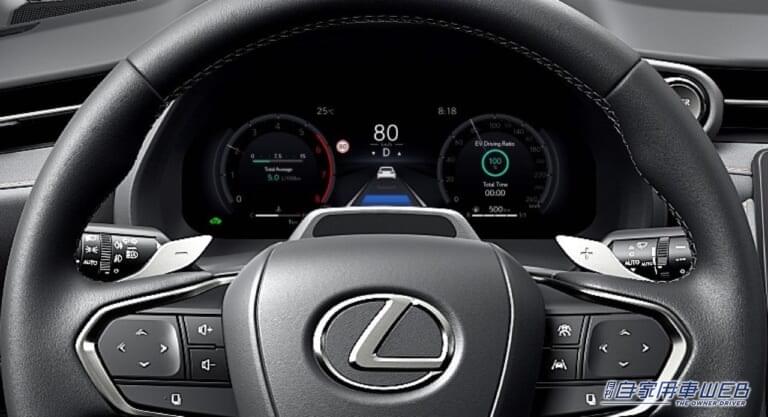 ステアリングまわりには、12.3インチの大型フル液晶メーターとヘッドアップディスプレイを配置。この2つを連携させて大きな視線移動をすることなく、運転に集中しながらナビゲーションやオーディオなど、各種機能の操作を簡単にできるようにしている。12.3インチの大型フル液晶メーターは、ドライバーが運転に集中できるよう、運転支援情報を見やすく表示し、大型液晶を活かした表示グラフィックも選択できるようになっている。