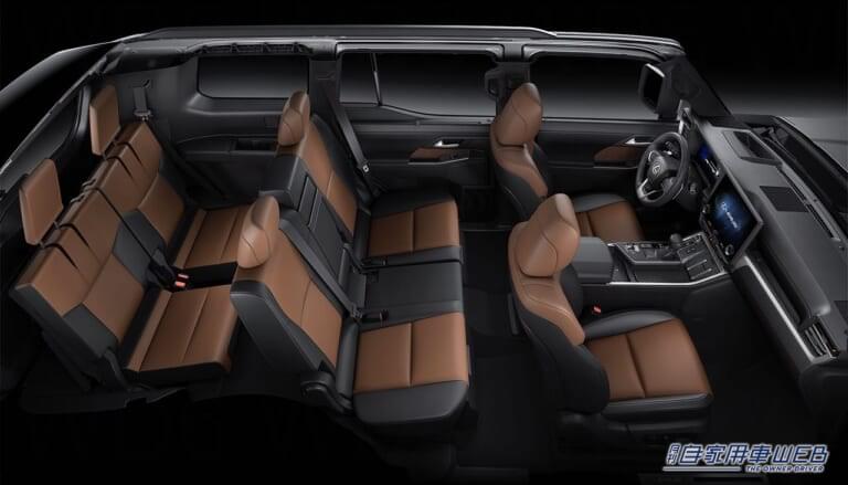 シートまわりも改良が加えられ、シートクッション、シートバックボルスター、ヘッドレストに手が入っている。1列目シートはヒップポイントから、かかとまでの高さを約3cm延長している。2列目シートは、キャプテンシートもしくはベンチシートのいずれかを選択可能。3列目シートも用意されるが、オフロード特化型の “OVERTRAIL”仕様は2列シート5人乗りのみとなる。