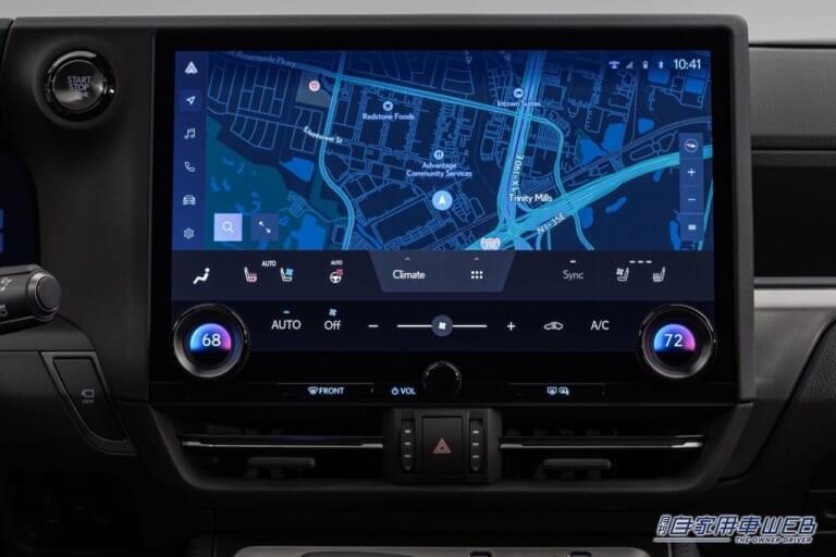 センターディスプレイは、大型の14インチタッチディスプレイを採用。メーターからつながる合成皮革で縁取ったLEXUS初のセンターディスプレイとしており、多くの機能をディスプレイ内のソフトスイッチに集約しているが、使用頻度の高い温度調整スイッチとオーディオスイッチは物理スイッチとして設定された。