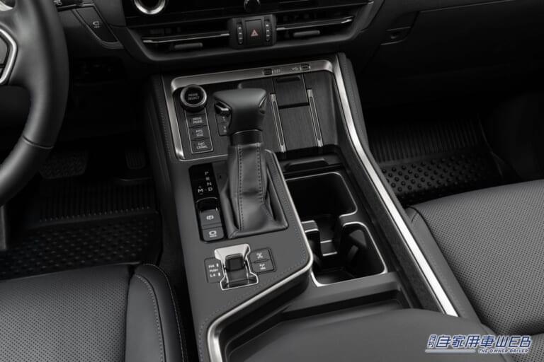 その他、走行関係のスイッチはオフロード走行時の操作性を考慮して、ドライバー側に走行系や駆動系スイッチを機能別に配置している。カップホルダーにはスライドリッドを設置し、閉じるとスマートフォンなどのデジタルデバイスを置くスペースとなり、使い勝手を高めている。