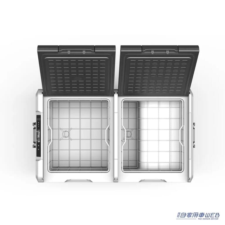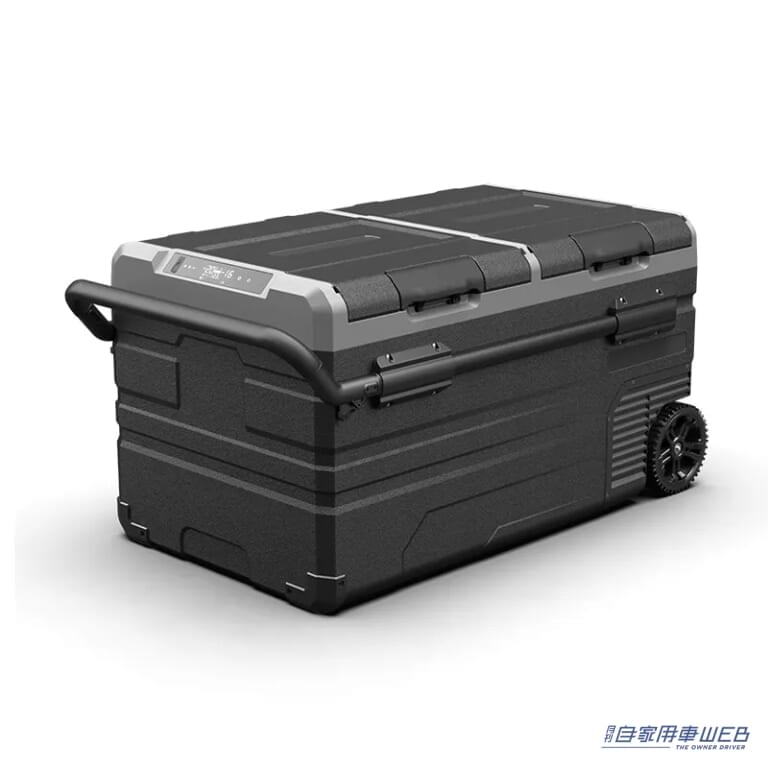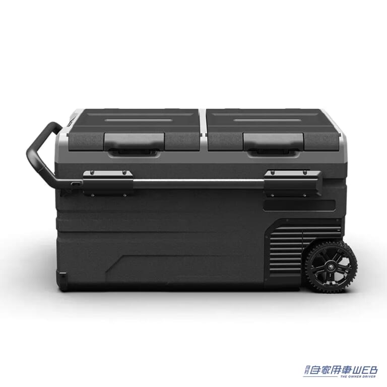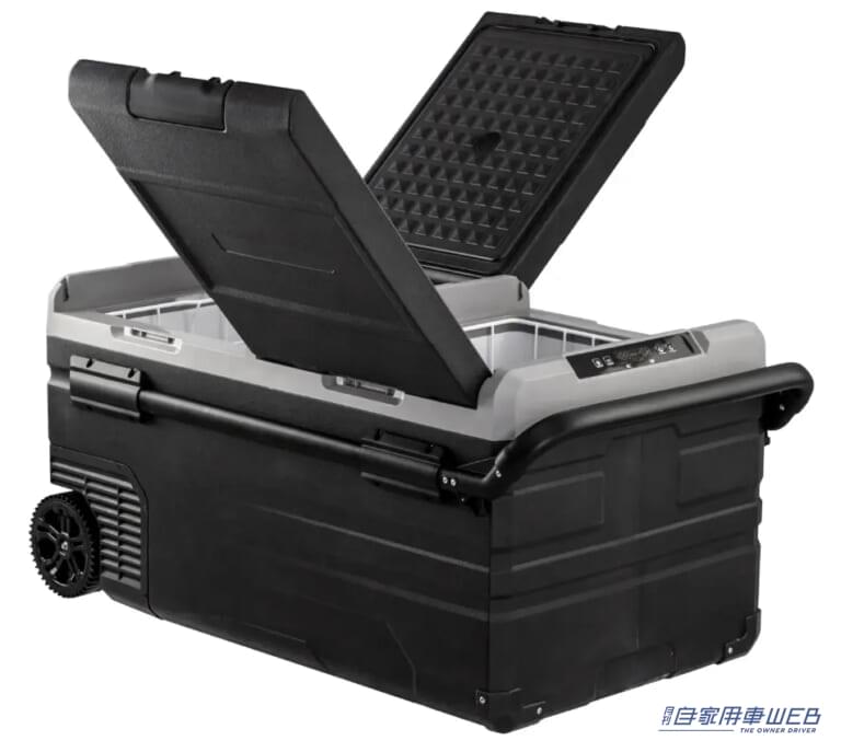 キャンピングカーに備え付けの専用冷蔵庫では事足りないときや、食材や飲料品を車外に持ち出したいときに役立つ。遠隔操作で運転席から温度設定を変更したり、バッテリー残量のチェックをすることも可能。