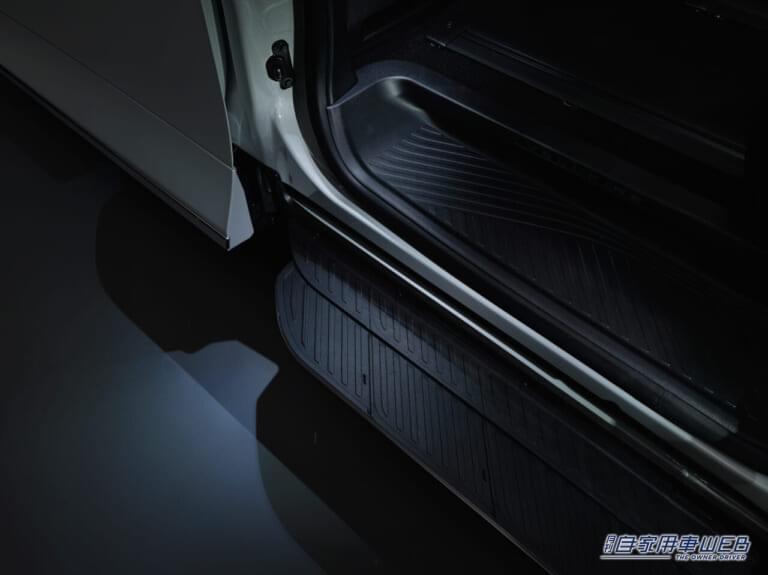 左右それぞれのスライドドアの開閉に連動して点灯するホワイトビームが、足元を広角に照射し、夜間の乗降をサポートします。