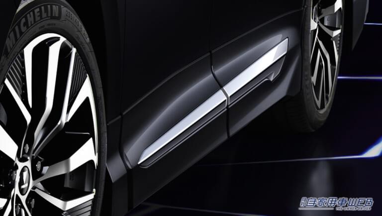 「MODELLISTAエアロパーツセット」の特徴は、ベース車の持つアグレッシブさをシャープなメッキパーツでさらに力強く、かつ先進的スタイルに創出する。エアロパーツセットに加え、大胆なメッキとボディ色のコンビネーションが押し出し感を強調するフロントグリル、コの字形状のメッキとブルーイルミで先進的な輝きとプレミアムな佇まいを付与するシグネチャーイルミブレード、横一文字に伸びたブルーのLEDが、リヤビューに迫力と煌めきをプラスするイルミルーフスポイラーを設定している。