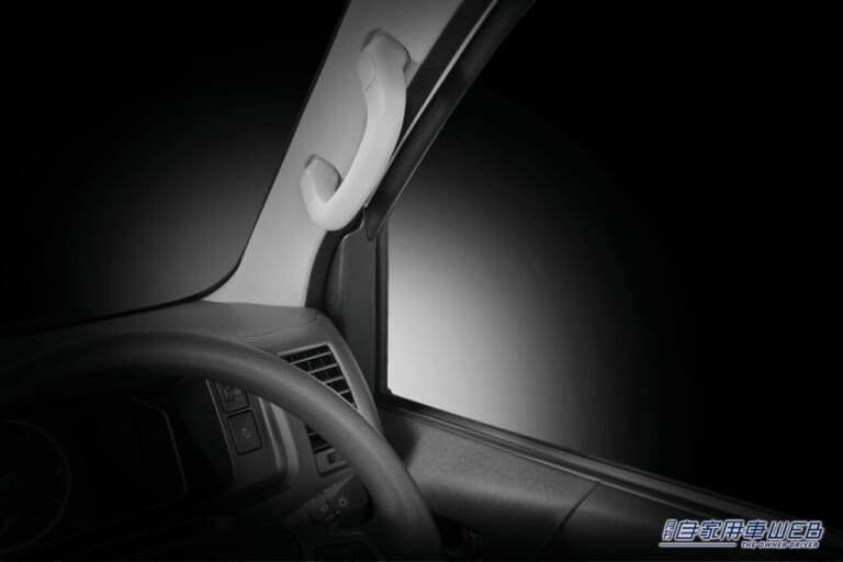 前席ピラー部分にアシストグリップが装備されているハイエース、キャラバン、エブリイといった小型貨物車・軽貨物車に乗っているユーザーは注目大だ。