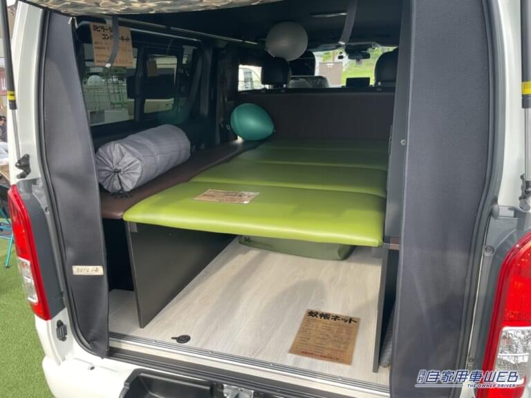 展示されていた車両はトヨタのハイエース。国産車のキャンパーとしては圧倒的な人気を誇る。