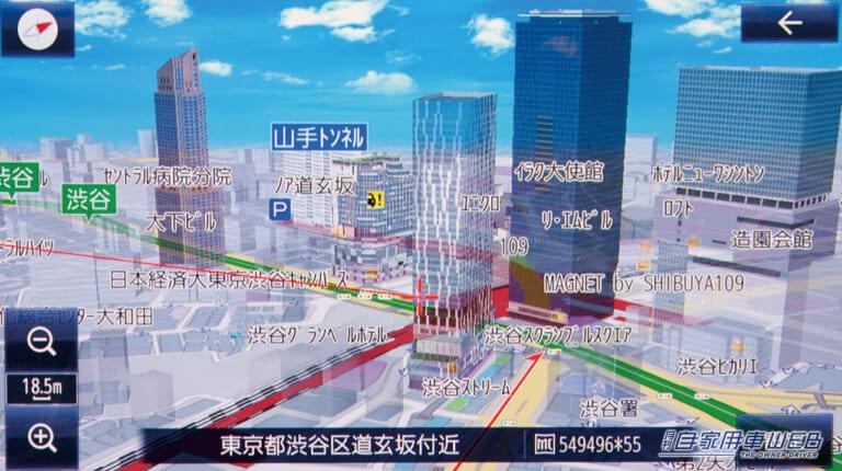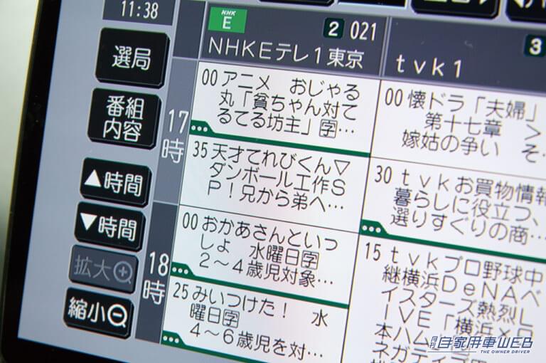そして有機ELディスプレイの美しさは格別だ。液晶に比べて黒が引き締まって見えるため、どの色もクッキリ鮮やかに映える。しかも視野角は180度と広く、真横からでもハッキリと見える。このモデルではブルーレイディスク、地デジ、HDMI入力といった高精細なソースを備えるが、これらでは真価を存分に発揮。もちろん地図上のアイコンやビルの透過表示などのグラフィックも引き立てる効果がある。解像度はHDだ。