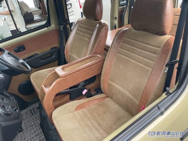 シートはフェイクレザーとコーデュロイ生地を組み合わせ、内装もオシャレに仕上げている。