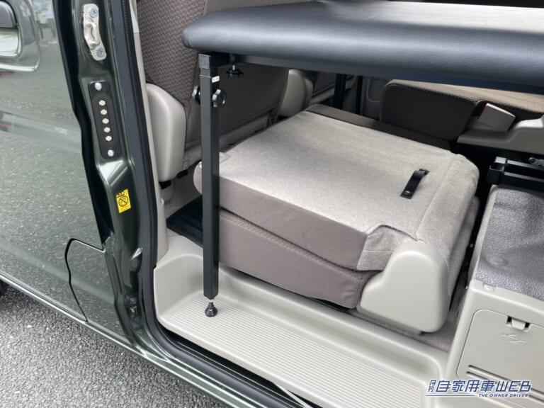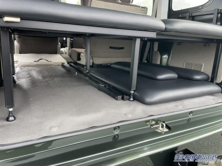 シート下も収納スペースとなっており、車中泊スペースを確保したまま、コンテナや長物などを積み込むことができる。