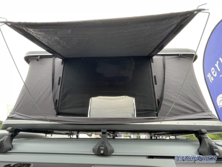 ルーフにはポップアップテントを装備。ボックスタイプなので大人2名が入っても余裕の広さだ。