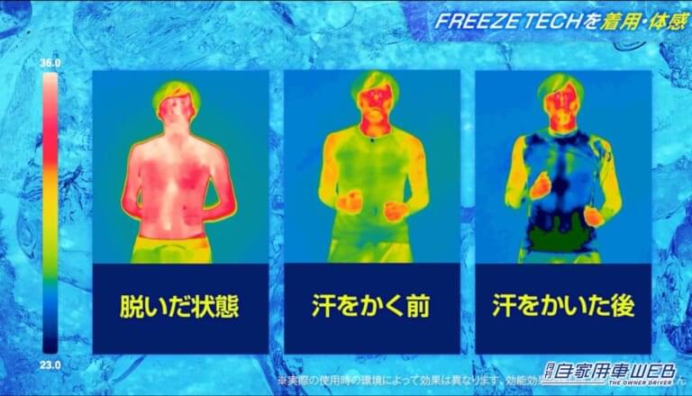 脱水症状や熱中症の危険もあるので、決して無理は禁物だが、愛車を綺麗に保ちたいという想いは、季節によって変わるものではないはずだ。そんな熱い気持ちのドライバーにオススメしたいのが、こちらの氷撃クーリングウエア「フリーズテック」だ。
