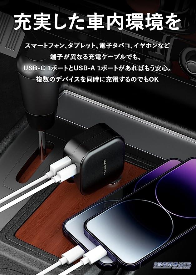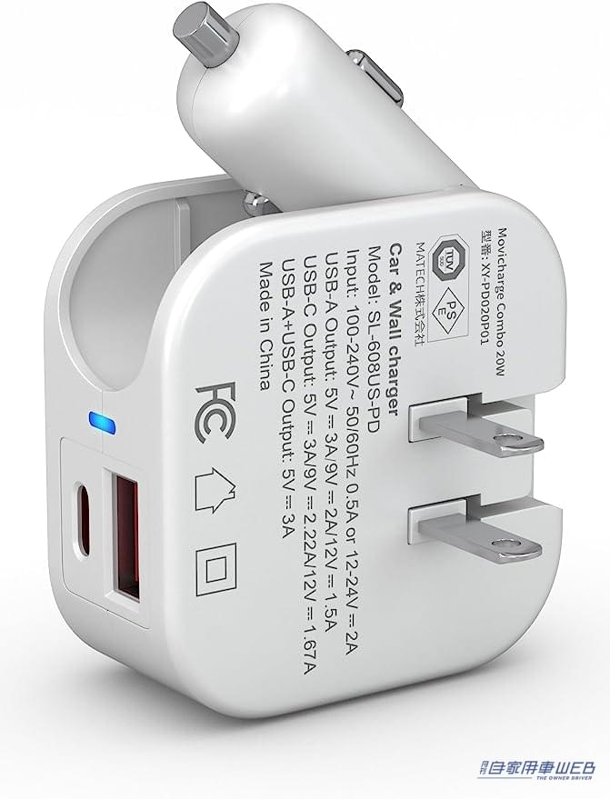 MATECH株式会社は、家庭用コンセントと車載用シガーソケットで使用可能なUSB充電器を発売した。