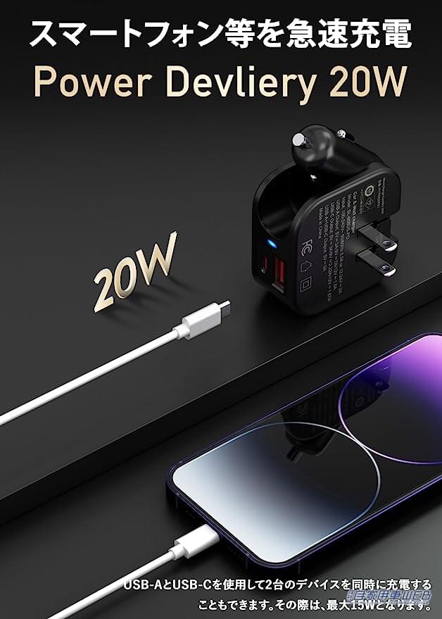 PD対応のType-Cは最大20Wまで出力が可能なので、スマートフォンやタブレットなどを急速充電することができる。また、従来型のUSB-Aも搭載しているので、ほとんどのデバイスの充電に対応。USB-Aは、Quick Charge 3.0の最大18Wまで対応しているので、USB-Aの急速充電にも対応している。