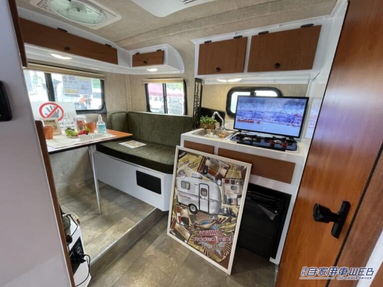 牽引免許が必要ないサイズのキャンピングトレーラー「ロデオミニ」。初めてのトラベルトレーラーを検討している人には最適なモデルだ。コンパクトながら必要な設備が整っており快適に過ごすことができる。