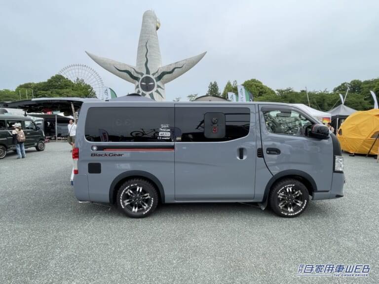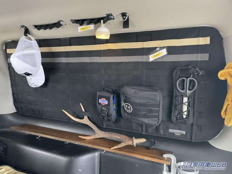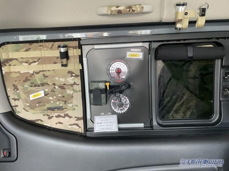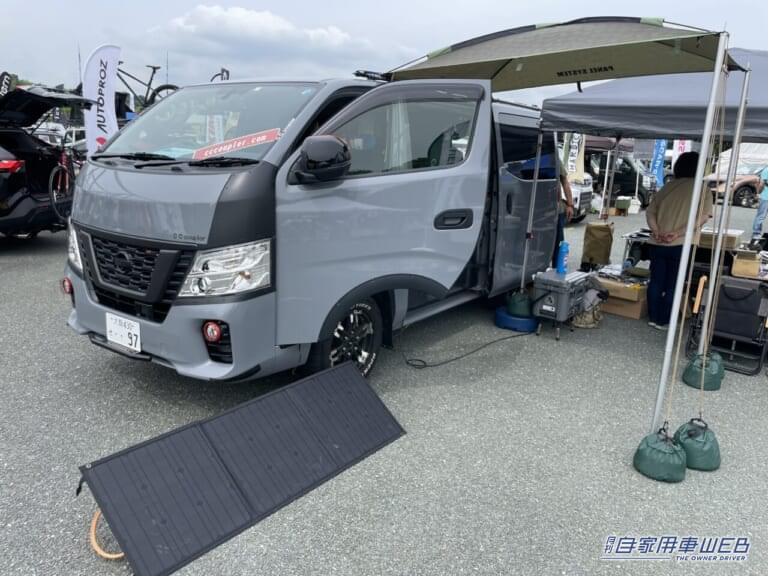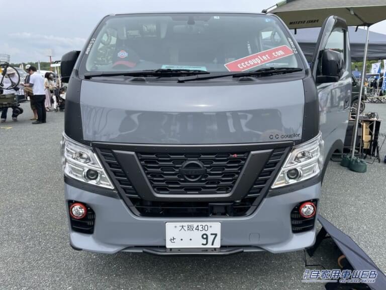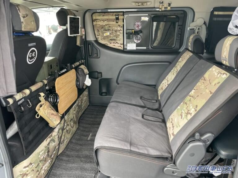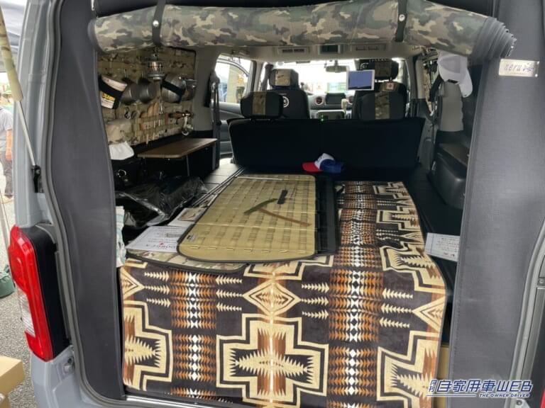 カスタムの幅が広く、趣味の車として人気のキャラバン。そんな車のデッドスペースを有効活用して収納力をアップさせた車が展示されていた。