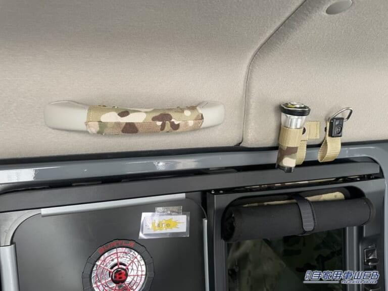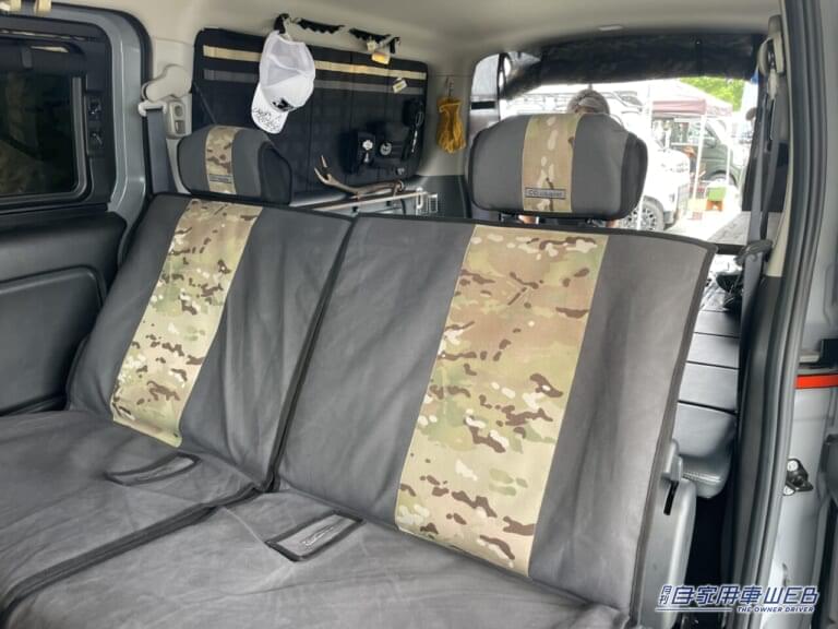 2列目のスペースを覗くと迷彩柄のカスタムアイテムが目立つ。