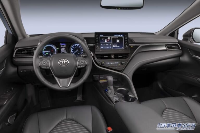 2024年モデルの「カムリ」は、ダイナミック・レーダー・クルーズ・コントロールやレーンディパーチャー・アラートなどの機能を標準装備したトヨタセーフティセンス2.5+が全車に標準装備され、オーディオとナビゲーションを一体化した7インチまたは9インチサイズのフローティングマルチメディアスクリーン、4.2インチまたは7インチTFTマルチインフォメーションディスプレイ、ヘッドアップディスプレイが採用された。インテリア素材もソフトタッチのプレミアム素材を採用し、全グレードでリニア・ダーク、ウッド・インレイ、パターン・メタルが採用され、洗練されたハイテクルックに仕上がっている。