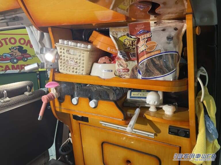 車内は愛犬との旅がしやすいようにさまざまな工夫がされている。