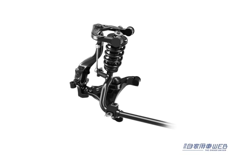 サスペンションも新開発となり、フロントはダブルウィッシュボーン式を踏襲。リヤサスペンションは強度を維持しながら軽量化したリーフスプリング式を採用している。また、ボディは大型化されたが最小回転半径の増加は最低限にとどめられており、さらに高出力仕様エンジン搭載車には、電動パワーステアリングをしてコントロール性と安定性を高めている。