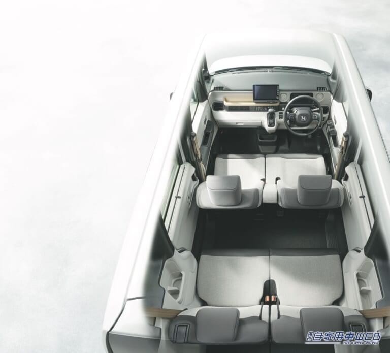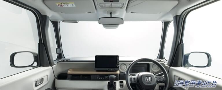 インテリアでは、すっきりとした視界を実現するインホイールメーターを採用した。ホンダの軽自動車としては初めて7インチのTFT液晶となり、Honda SENSINGの表示を見やすく分かりやすく確認できる。また、収納も進化しグローブボックスは、2代目「N-BOX」と比較して約2倍に拡大。その真上にはインパネトレーが設置される。この樹脂トレーは「N-BOX」はホンダ初の壁材をモチーフとし、「N-BOX CUSTOM」はストーン調となっている。
