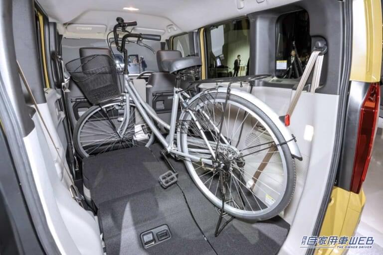 今回、「N-BOXスロープ仕様」の概要も公開された。「N-BOX」と「N-BOX CUSTOM」で選択可能で、従来通り電動ウインチを装備。スロープ操作が進化し、初代で11手順、2代目で5手順だったのが、新型では「ヘッドレストを下げる」、「シートをダイブダウン」、「スロープを引き出す」の3手順に削減され、介護負担が軽減されている。